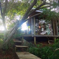 Haben uns ein kleines Tiny Home gemietet. 😍 Sehr romantisch. Mit kleiner Küche und Bad. Vor dem großen Fenster kann man wunderbar denieren. 😄