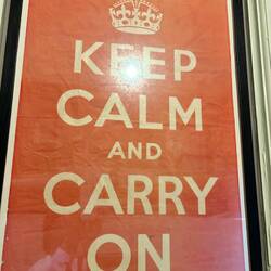 Il manifesto risale al 1939, quando il governo britannico pensò che fosse necessario fare una propaganda per tenere alto il morale dei cittadini, visto che la seconda guerra era appena iniziata e si sapeva che i bombardamenti su Londra e sull’Inghilterra non sarebbero tardati ad arrivare. Tra i manifesti stampati, ci fu anche questo. Keep Calm and Carry On voleva essere un invito a non lasciarsi abbattere dal momento particolarmente difficile. Con la corona a simboleggiare che il messaggio arrivava direttamente dalla casa reale, da Giorgio VI, padre della Regina Elisabetta. Finita la guerra, il manifesto fu dimenticato.