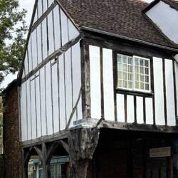 Di conseguenza abbiamo visitato la città di prima mattina, passeggiando fra le vie del centro, dove abbiamo fatto la seconda colazione in attesa che la Cattedrale aprisse. Sorseggiando un caffè e degustando un croissant, ci siamo accorti di essere seduti accanto alla statua di Geoffrey Chaucer, autore delle famosissime “Canterbury Tales” (classico della letteratura inglese del 1300, composto da una serie di racconti strutturati come Il Decamerone di Boccaccio). Poco oltre i bellissimi Wastgate Garden, ora verdissimi e fioriti, dove Snoopy ha apprezzato particolarmente i cigni e i germani reali…noi anche un albero secolare e le graziose costruzioni. Usciti dai giardini, ci siamo ritrovati di fronte al Royal Museum and Free Library, edificio dalla facciata in stile Tudor. Numerose anche qui, come in Francia, le case a graticcio; particolari quelle che si affacciano sui canali dello Stour, come le Hold Weaver Houses, costruite nel 1500 per ospitare i tessitori ugonotti in fuga dalla Francia e oggi trasformate in esercizi commerciali.