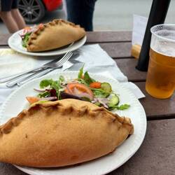 Poi ci siamo momentaneamente divisi, prendendo strade diverse: Antonio e Snoopy, sono scesi giù fino al mare, io invece ho raggiunto l’altra collina per salire fino alla chiesa. Al ritorno ho trovato un passaggio in auto da una simpatica famiglia inglese che, al momento dei saluti ( e ringraziamenti da parte mia) scherzosamente mi ha chiesto 10£ come fosse un taxi… Ci siamo ritrovati poi per uno spuntino in uno dei tanti locali sulla via principale del paese, ordinando cornish pasties: questa volta ce le hanno portate grandissime, tanto che abbiamo avuto bisogno dell’aiuto di Snoopy per finirle! Al tavolo vicino al nostro, lasciato incustodito con dei resti di cibo, gabbiani famelici si avventavano per contenderselo. Avevamo letto che, in questa zona, le guide sconsigliavano di circolare con dello street food in mano per evitare di essere aggrediti a derubati da questi uccelli marini, qui particolarmente aggressivi…e ne abbiamo avuto la prova!