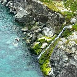 L’infrangersi delle onde sulla costa verdissima e sugli scogli che emergono dal mare, lo stridere dei gabbiani, la vista del faro di Longship, costruito a circa un miglio di distanza per illuminare la rotta alle navi in transito. Inizialmente di 24 metri, il faro venne poi innalzato agli odierni 35 metri per via delle altissime onde che nelle notti di tempesta lo sommergevano completamente, vanificandone lo scopo.