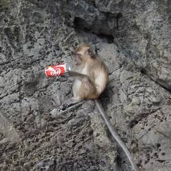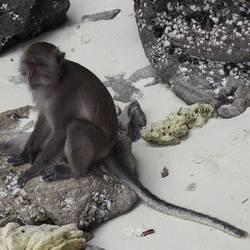 Nächster Stopp: Monkey Beach – ein winzig kleiner Strand und überall sitzen Affen. Man kommt ganz nahe an sie heran, sollte sie aber nicht streicheln, da sie durchaus zubeißen können. Man merkt, dass sie an Touristen gewohnt sind, da sie den Leuten bei der kleinsten Unaufmerksamkeit Getränke oder Essen ohne scheu stibitzen.