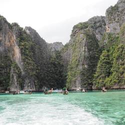 Nach einer halben Stunde Fahrt mit dem Speedboot erreichten wir endlich die Bucht, besser bekannt als „the Beach“, wo auch der gleichnamige Film mit Leonardo DiCaprio gedreht wurde. Ich kann wirklich sagen, dass sich das frühe Aufstehen gelohnt hat. Um 7:00 Uhr morgens sind wir nämlich fast alleine. Je später es wurde, desto mehr Boote haben die Bucht belagert.