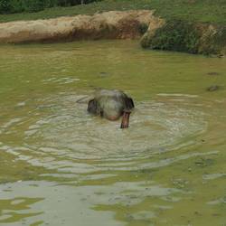 Früh wecken uns die Gibbon Affen, die in den Bäumen umher springen. Der See liegt klar und ruhig vor einem und kleine Dunstwolken heben sich auf der anderen Uferseite ab.