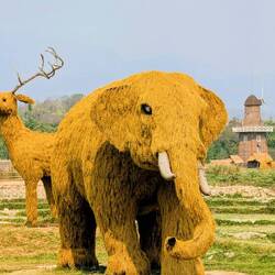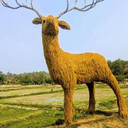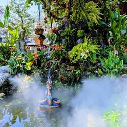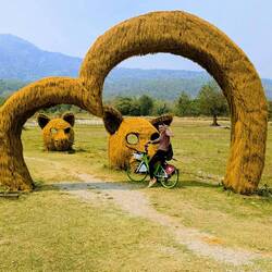 Unsere Route begann von unserer Unterkunft aus Richtung Süden. ⬇️ Durch das Nimman-Viertel, vorbei am „Pharmakologischen Garten“ und dem Uni-Gelände inklusive großer Uni-Klinik. Ziel war der📍Buak Hard Public Park. Der Park ist nicht groß aber dafür total liebevoll gestalten. 🧡 Ein Weg mit kleinen Brücken, hier Figur, ein bisschen Wasser und grüne Wiesen, ein paar Sportgeräte und Kioske. Und Schattenplätze. 😉 Dieses Jahr ist in Chiang Mai das Flower Festival 💐🎊. Dies wurde auch im Park durch Figuren aus Blumen widergespiegelt. Traumhaft schön.