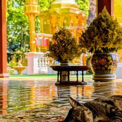 Weiter ging es in in die📍Old City von Chiang Mai. Diese ist von den Resten der ehemaligen Stadtmauer 🧱 und einem Wassergraben umrandet. Über 4️⃣ Tore, die mehr oder weniger gut erhalten sind, gelangt man hinein. Heute haben wir uns den ersten Teil der Old City angeschaut. Dazu zählen der📍Wat Phra Singh (goldene Pagoda), der📍Wat Rajamontean (großer Buddha) und der📍Wat Lok Mo Li.