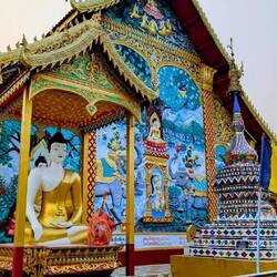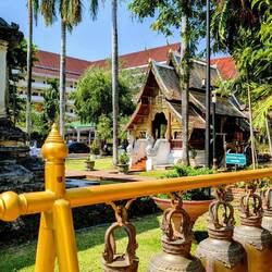 Unser heutiger Tag begann mit einem weiteren Tempel ganz nach dem Motto „A temple a day keeps the doctor away“. 🤓 Wir besichtigten den Tempel📍Wat Chet Yot. Ihn haben wir gestern zufällig auf dem Weg zum Night Bazaar entdeckt. Das Gelände ist nicht groß. Besonders 💫 ist, wie wir finden, dass dort alte Tempel und Chedis zu finden sind 🏚️ aber auch neue Tempel 🏠, die noch in Benutzung sind. Tatsächlich waren auch einige Besucher vor Ort womit wir gar nicht gerechnet hätten.