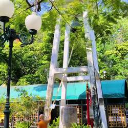 Wir durchquerten erst den 📍Morning Market bevor wir dann am Mekong Ufer entlang unseren Weg Richtung 📍Wat Xieng Thong Tempel fortsetzen. Der Tempel, mit seinen vielen Mosaik-Bildern, hat uns sehr gut gefallen. Weiter ging es am Nam Khan River (Nebenfluss des Mekongs) und über eine kleine Roller- und Fußgängerbrücke 🌉. Unser Ziel war die Northern Bus Station an der wir ein Ticket für die morgige Fahrt nach Nong Khiaw kaufen wollten. Dort angekommen 🥵 (nach einer guten Stunde) mussten wir feststellen, dass der Betrieb dort eingestellt wurde. 😭 Die neue Station befindet sich weitere 6 km außerhalb. Das war zu weit zu Fuß. Also wieder zurück 🔙 um bei einer anderen Bus Station (Minibus Station) unser Glück zu versuchen. Diese lag genau in der anderen Ecke der Stadt. Nach einer kurzen Pause in unsere Unterkunft ging es gute 45 min dort hin. Tatsächlich hatten wir Glück 🍀 und konnten uns vor Ort zwei Tickets kaufen. Was ein Glücksgefühl nach guten 4 Stunden (L)Aufwand. Was aber auch 4 Stunden sind in denen wir tolle Ecken der Stadt gesehen haben wie den 📍Wat Manorom und 📍Thatluang Park, in dem gerade ein großes „Volksfest“ 🎡 aufgebaut wird. Ab Ende dieser Woche wird in Laos nämlich das Buddhistische Neujahrsfest 🪅 „Bun Pi Mai“ gefeiert. In Luang Prabang wird das Fest vom 11.-20.04. gefeiert mit verschiedensten Programmpunkten. Die Vorbereitungen, wie Tempel nachgestrichen, sind im Gange.