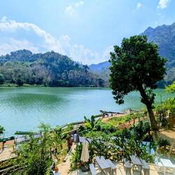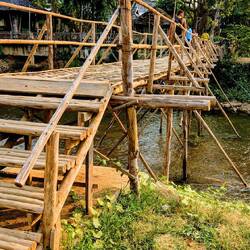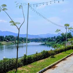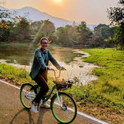 Mit dem Rad ging es dann kurz durch unser Viertel und dann auf einem richtigen Fahrrad-Weg zum📍Huay Tueng Thao Reservoir, ein künstlich angelegter See 💦 als Wasser-Reservoir für Chiang Mai. Der See liegt ein wenig oberhalb des Stadtkerns nah an den Bergen. Am Uferrand befinden sich viele Restaurants 🍛 und Cafés ☕️ sowie ein Campingplatz 🏕️. Auch Freizeitaktivitäten wie Zipline oder Kanufahren wird hier angeboten. Der See liegt sehr idyllisch und ruhig. Hat uns sehr gut gefallen.