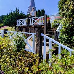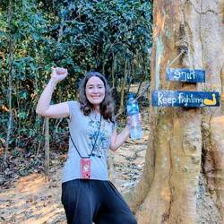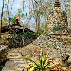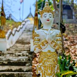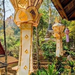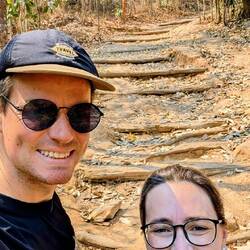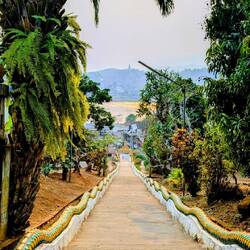 Zu Fuß ging es dann durch einen kleinen Park und über das Uni-Gelände zum📍Wat Pha Lat Hike (Monk’s Trail). Über diesen gelangt man zum (1)📍Wat Pha Lat Tempel und zum (2)📍Wat Anagami. Steil bergauf ging es zum ersten Tempel mitten im Wald. Eine Mischung aus alt und neu von Natur umringt. Immer mal wieder ein kleiner Bach. Sehr idyllisch und beeindruckend. 🧚 Der Ort hat uns sehr an Taizé erinnert. 👩❤️👨Noch steiler wurde es zum zweiten Tempel. Dieser lag auf einem kleinen Plateau. Oben angekommen haben am Café eine kalte Cola 🥤und ein paar Bananen-Chips 🍌 auf uns gewartet. Das hat gut getan.