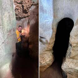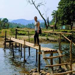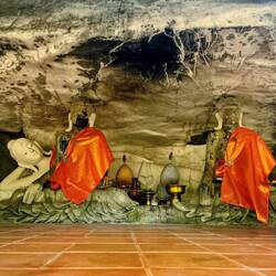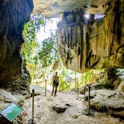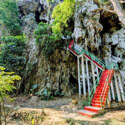 Nach einer guten Stunde Aussicht genießen machten wir uns an den Abstieg und dann weiter in Richtung der 📍Pha Thok Caves. Die zwei Höhlen liegen gute 2 km außerhalb von Nong Khiaw. Während des Laotischen Bürgerkriegs 💣 in den 1960er Jahren wurden die Höhlen als Schutzraum genutzt (8️⃣ Jahre haben dort 3️⃣0️⃣0️⃣ Menschen gelebt). Teile davon auch als Krankenhaus, Militärische Leitstelle und Polizei-Stadion.