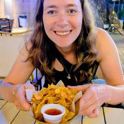Zum Abendessen 🍛🫔🥢 hatten wir uns mit einem belgischen Pärchen 🇧🇪 und einer Französin 🇫🇷 verabredet, die wir heute auf der Busfahrt kennen gelernt hatten. Ein gemeinsames Gesprächsthema hatte sich schnell gefunden. Das Reisen. 🧡 Es war ein sehr gemütlicher Abend.Lue lisää