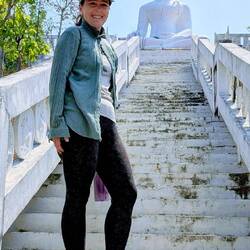 Mit dem Leih-Rad 🚲 sind wir zu unserem ersten Sightseeing-Spot dem📍Kruba Srivichai Monument geradelt. Ohne Gangschaltung ist selbst die kleinste Erhebung eine Herausforderung wie wir feststellen durften.… 🪫 Nach guten 30 Minuten waren wir dort. Das Monument fanden wir nicht so imposant. Dafür die lange Treppe ein Stück daneben. Diese war sehr beeindruckend. 💛