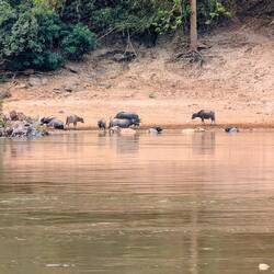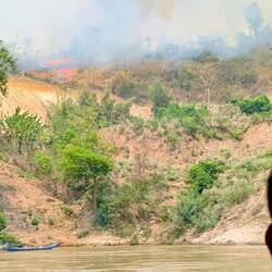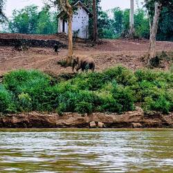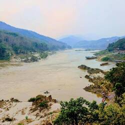 Auf unserem ersten Stück bildete der Mekong noch die Grenze zwischen Thailand 🇹🇭 und Laos 🇱🇦 bevor es dann voll und ganz in Laos Gebiet ging. Vorbei an kleinen Dörfchen 🛖, am Wasser spielenden Kindern 💦🚸, große bereits abgebrannte oder noch brennende 🔥 Hänge, an Kühen 🐮 am Ufer, kleinen Sandstränden 🏝️ und arbeitenden Laoten schipperten wir den Fluss abwärts.