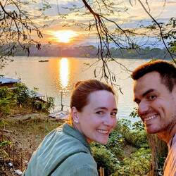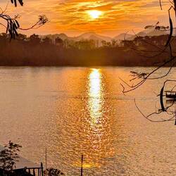 Zum Tagesabschluss genossen wir noch den Sonnenuntergang 🌅 über dem Mekong 👩❤️💋👨.Lue lisää