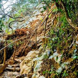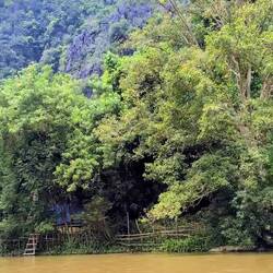 Von unserem Treffpunkt aus ging es zum Pier, an dem bereits ein Boot ⛵️auf uns wartete. Ca. 1 Stunde fuhren wir mit diesem den Nam Ou River flussaufwärts bis zu unserem erste Stopp. Über den Phanoi Cave Trail (steiler Anstieg mit Steinen und Holztreppen) ging es zur 📍Phanoi Cave. Die Höhle ist ca. 250 m tief und hat, wie die Höhle gestern, während des Krieges 💣 als Schutzraum für die Einwohner des nahegelegenen Dorfes gedient. Tagsüber haben sich die ca. 300 Menschen in der Höhle aufgehalten. Nachts konnten sie raus gehen. 🎣🔪