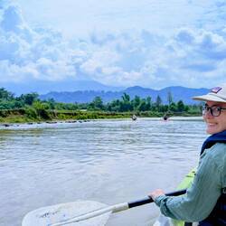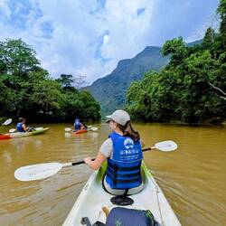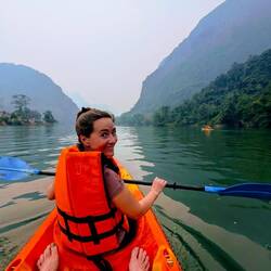 Nach dem Frühstück machten wir uns auf den Weg zu unseren belgischen 🇧🇪 Freunden. Am heutigen Tag stand eine gemeinsame Kayak 🛶 Tour auf dem Nam Xong River 🏞️ an.
