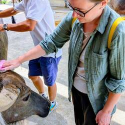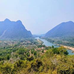 Die Strecke (Start: flussaufwärts, Ende: Vang Vieng) hatte eine Länge von guten 1️⃣0️⃣ km. Nach einer kurzen Einweisung durch einen Tour Guide ging los. Das Wasser 💦 war meist ruhig mit kleineren schnelleren Passagen. Es ging vorbei an viel Natur 🌳, immer mal wieder eine Unterkunft 🛖 und badenden Büffeln 🐃. Nach guten 1:45 Stunden waren wir am Ziel. 🎯 Die Tour hat uns wirklich sehr gut gefallen. 👍 Vom Wasser aus bekommt man nochmal eine ganz andere Sicht auf die traumhaft schöne Landschaft rund um Vang Vieng.