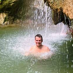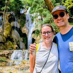 Mit einem Tuk Tuk ging es heute für uns und unsere belgischen 🇧🇪 Freunde an den 📍Kuang Si Waterfall. Dieser liegt gute 50 Minuten außerhalb von Luang Prabang. Der Wasserfall 💦 besticht durch seine vielen Ebenen und sein klares Wasser. Es sah traumhaft aus. 🤗 Auch auf Grund der Sonne ☀️ die heute endlich wieder zurück war. Über einen kleinen Weg konnten wir entlang der Ebenen laufen und auch zum höchsten Punkt.