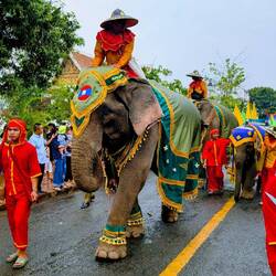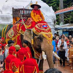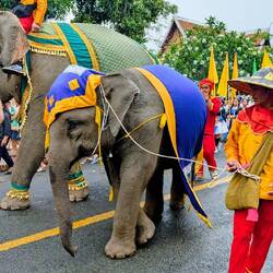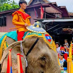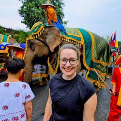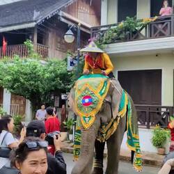 Danach ging es wieder zurück zur „Main Street“ auf der heute Morgen eine Elefanten Parade 🐘 aufgrund des Laotischen Neujahrsfestes 🎉 (Bun Pi Mai) stattfand. Es hatten sich am Straßenrand bereits viele Menschen angesammelt, die auf die geschmückten Elefanten warteten. Und da kamen sie auch schon…