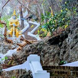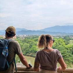 Im Anschluss machten wir uns auf den Weg zum 📍Phousi Hill. Dieser ist sozusagen der Hausberg von Luang Prabang. Von oben hat man einen tollen Blick auf die Stadt 🌆 und den 🏞️ Mekong. Wir genossen die morgendliche Ruhe. 😎