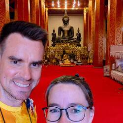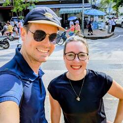 Nach einer Pause im Hotel haben wir uns mit unseren belgischen 🇧🇪 Freunden in der Innenstadt getroffen. Schon auf dem Weg dorthin wurden wir klitsche klatsche nass. 💦 Das Programm mit Musik 🎵🎤, Wasserspritzen und Schaummaschine 🫧 war schon im vollen Gange als wir ankamen. Wir suchten uns einen nicht ganz so lauten Platz um uns noch etwas unterhalten zu können. Dort sind auch die tollen gemeinsamen Bilder entstanden. 🧡 Abends sind wir noch etwas Essen gegangen. Heute in einem traditionellen Laotischen Restaurant. 🇱🇦👵🥄Lue lisää