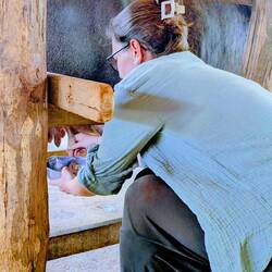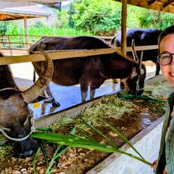 Neben Büffeln 🐃 (laotisch und indisch) leben dort auch Schweine 🐖, Hasen 🐇 und Ziegen 🐐. Für all diese Tiere werden auf der Farm Kurse 🧑🏫 für die lokalen Bauern 👨🌾 angeboten, in denen sie mehr über die Haltung aber auch Pflege der Tiere und den Umgang bei Krankheiten erlernen können.