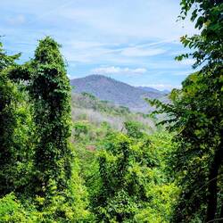 Ein Stück weiter den Berg hinauf befindet sich der 📍Phanoi Viewpoint. Dieser war unser nächster Stopp. Von dort hatte man einen wunderbaren Ausblick in das Umland. 🏞️ Nach unserem Abstieg ging es über das bereits erwähnte Dorf (Muang Ngoy) zurück zu unserem Boot. Gute 20 Minuten fuhren ⛵️ wir nun - wieder in Richtung Nong Khiaw - zu einem kleinen Dorf 🛖, in dem ein leckeres Mittagessen auf uns wartete. Es gab Nudeln 🍝 mit Ei 🍳 und Gemüse 🥕🧅🥬 in Bananenblätter 🍌🍃 eingewickelt. Zum Nachtisch gab es eine Banane 🍌.