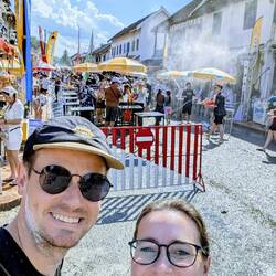 Wir und unsere belgischen 🇧🇪 Freunde haben in einem Café auf der „Main Street“ einen super Platz in der ersten Reihe gefunden 🤗 von dem wir die Parade miterleben konnten. Bei Iced Tee 🧊☕️ und Bier 🍺 und leckerem Essen 🥖🍅🧀 haben wir es uns dort gut gehen lassen.