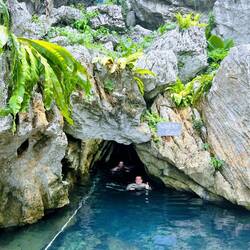 Wir waren schon fast auf dem Rückweg als wir neben der Tham Chang Cave die📍Water Cave entdeckt haben. Eine Höhle im Wasser in die man rein schwimmen kann. Am Eingang der Höhle stand ein Schild, dass es ca. 250 Meter bis zum Ende der Höhle sind. Die Jungs 🏊♂️ waren so mutig und haben sich direkt die Badeoutfits angezogen und sind rein geschwommen. Nach guten 15 Minuten kamen sie mit strahlenden Augen 🤩 zurück. Nun trauten sich auch die Mädchen rein. 🏊♀️ Für Svenja war es eine große Überwindung. Es hat sich aber definitiv gelohnt.