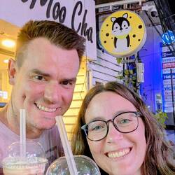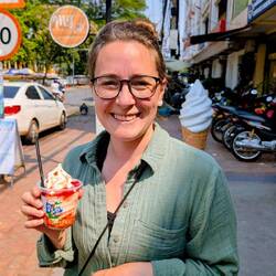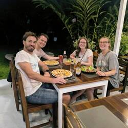 Den Abend liesen wir mit Geraldine und Nico (sie waren auch beim Tagesausflug dabei) erst bei Yoghurt Shakes 🥤 und Bier 🍺 ausklingen, bevor wir dann noch zusammen in einem indischen 🇮🇳 Restaurant essen waren. Ein rundum gelungener Tag rund um Nong Khiaw! 🧡