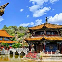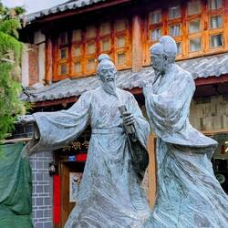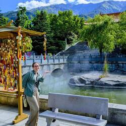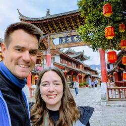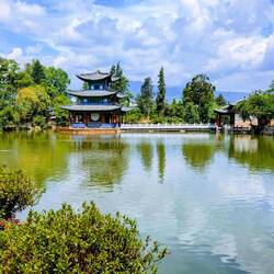 Die Altstadt bezaubert durch seine kleinen Gassen, Flussläufe 💦 und die alten Häuser 🛖 gebaut im Stil der Naxi-Architektur. Naxi ist das in dieser Region lebende Volk (ethnische Minderheit). Das Zentrum 🎯 der Naxi-Kultur ist in Lijiang. In Shuhe sieht man viele Gemälde und Figuren die das Leben der Naxi zeigen. Auch deren eigene Schrift 📝 wird dargestellt. Es hat uns dort gut gefallen 👍 auch wenn es nicht viel anders war als Dali und Liliang. Auf dem Heimweg konnten wir noch einen Blick auf den 📍Jade Dragon Snow Mountain, leider fast ohne Schnee, erhaschen.
