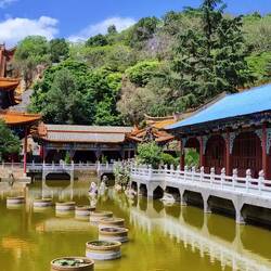 Auf dem gleichen Areal befindet sich der buddhistische📍Chongsheng Tempel. Dieser besteht aus vielen verschiedenen großen Gebäuden 🏯 und ist an den Hang gebaut. Die intensive Farbgestaltung der Gebäude und Buddha Figuren haben uns sehr gut gefallen. Umgeben ist er von einer wunderschönen, ruhigen Parklandschaft. 🌳
