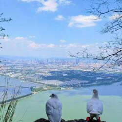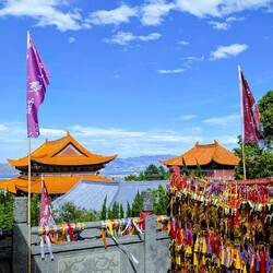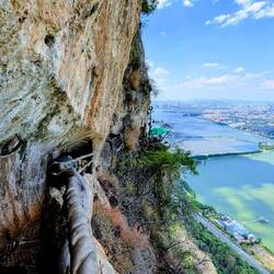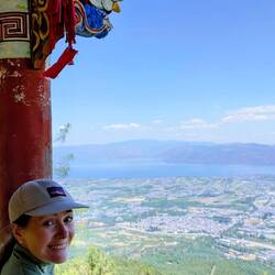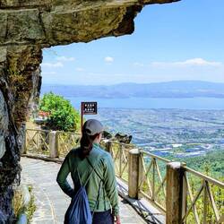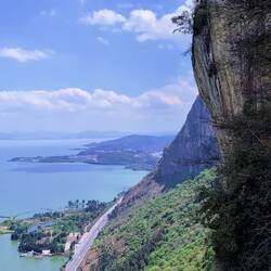 Der Ausblick 👀 war der absolute Hammer. Die steilen massiven Berge ⛰️ im Rücken und den Blick auf den Erhai-See 💦 und die Bergkuppen dahinter. Ein Traum. 😍 Heute hatten wir auch richtiges Glück mit dem Wetter. ☀️ Es war kaum eine Wolke am Himmel.