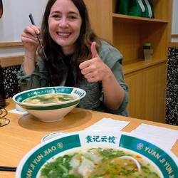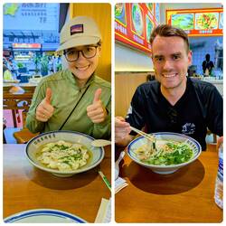 Den einsetzenden Regen 🌧️ nutzen wir um ein gemütliches Restaurant aufzusuchen. Es gab Rinder-Nudel-Suppe 🍜 und Klöße 🥟. Sehr lecker. Für den Heimweg nahmen wir den Stadtbus 🚍 direkt bis in die Altstadt.