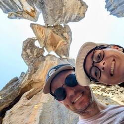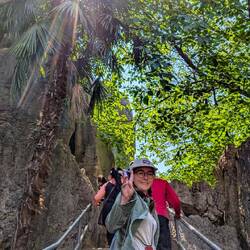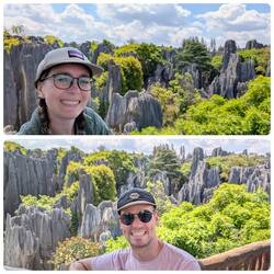 Der Park erstreckt sich über eine unglaublich große Fläche. Überall sind kunstvoll geformte Kalksteine 🪨 zu finden durch die man sich schlängeln kann, umgeben von saftig grünen Wiesen 🌿 und Bäumen 🌳. Es gibt auch zwei kleine Seen 💦 und einen Aussichtspunkt 🗼. Die Reiseleiterin hat wieder sehr viel erzählt über die Steinformationen und Hintergründe (vermuten wir 😉).