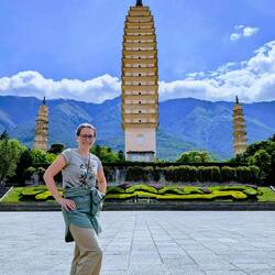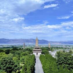 Den heutigen Morgen haben wir genutzt um die nächsten Tage hier in Dali zu planen. 📑 Gegen Mittag ging es durch die Altstadt zu den 📍Drei Pagoden. Die Pagoden 🛕 sind ein Wahrzeichen von Dali. Sie sind im Dreieck 🔻 angelegt und bestechen durch ihre Schlichtheit und Höhe. Sie sind ein super Fotomotiv. 😉