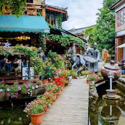 Den heutigen Tag haben wir ruhig angehen lassen. Felix ist etwas erkältet 🤧 und wir wollen vermeiden, dass es schlimmer wird. Als die Sonne ☀️ ein wenig raus kam haben wir uns auf den Weg in die 📍Lijiang Ancient Town (Altstadt) gemacht. Diese ist ähnlich verwinkelt mit alten Häusern 🛖 allerdings flächenmäßig etwas größer als die in Dali. Zwischen den Häusern sind immer mal wieder Tempel 🏯 oder große freie Plätze zu finden. Was besonderes ist 💡: Die Ancient Town hier in Lijian gilt als UNESCO Weltkulturerbe (UNESCO Welterbestadt). 🏅