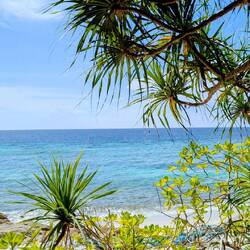 Am Anfang sind wir noch auf befestigter Straße 🏘️ gelaufen. Diese wurde dann sandig ⏳ und kurz danach zu einem Trampelpfad durch den Wald 🌴🌳. Immer weiter bis wir das Rauschen des Meeres gehört haben 👂🌊 und dann auch schon gleich am Strand 🌊⛱️ waren. Da war er also wirklich. Ein ruhiger etwas abgelegener Strand. 🤗 Es waren gerade mal vier Menschen dort. Der Sand ⏳: weiß. Das Wasser 🌊: kristallblau. Wir suchten uns ein schattiges Plätzchen und bauten unser Lager auf. Unser Duschvorhang als Unterlage. ✅ Das Badetuch zum Daraufsetzen. ✅ Immer dabei: unser kleiner Besen zum Sandabkehren (meist an den Füßen). ✅ Perfekt! 👍