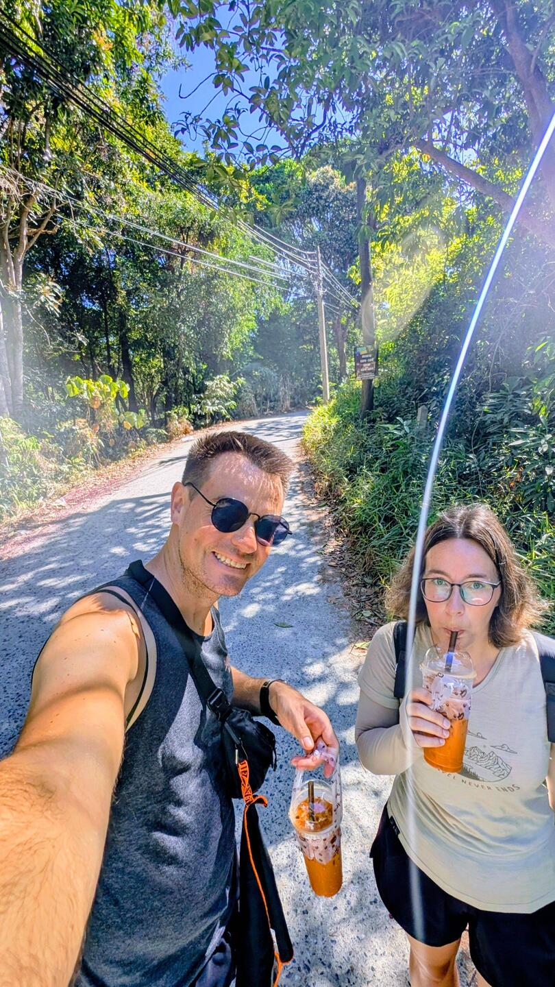 Gegen Mittag sind wir ins Dorf spaziert 👣 und haben uns ein Erfrischungsgetränk geholt. 🧋 Für Felix gab es eine Thai Tea. Für Svenja ein Taro Milk Tea. Zum Genießen mit Ausblick gings wieder auf die Strandliege. 🌊⛱️🪑 Danach dann ein Lokationwechsel auf die Veranda unseres Bungalows. 🛖 So gefällt das uns. 👍 Dort haben wir dann nochmal die Laptops 💻 raus geholt und ein bisschen nach Ausflügen auf unsere nächste Insel 🏝️ recherchiert.