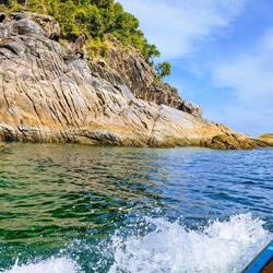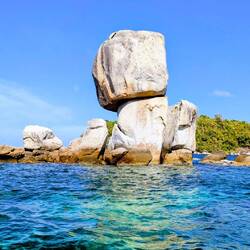 Zuerst ging es zu einer Felsformation 🪨 namens 📍Koh Hin Sorn. Die großen quadratische Snapeo-Steine, die übereinander gestapelt sind, waren wirklich sehr beeindruckend. Nur je ein Stück weiter die beiden nächsten Stops 📍Koh Palai und die 📍Kamnan Bay, beides tolle Stelle zum Schnorcheln mit vielen bunten Fischen 🐟 und Korallen🪸. Wir haben sogar „Weichkorallen“ und einige „Blau Korallen“ gesehen. Toll! 🤩
