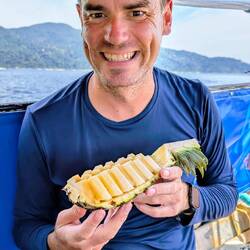 Wieder auf dem Longtail Boat gab es noch frisch aufgeschnittene Melone 🍉 und Ananas 🍍 und dann ging es auch schon weiter zum nächsten Schnorchel-Stop bei der Insel 📍Koh Yang mit ganz vielen „Blattkorallen“ 🪸. Davor sahen die bunten Fische nochmal viel farbintensiver aus. Auch an der Insel 📍Koh Hin Ngam hatten wir nochmal die Möglichkeit zu Schnorcheln.