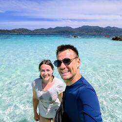 Das mit dem weißen Sandstrand und kristallblauen Wasser könne wir definitiv bestätigen. ✅ Auch die hohe Touristenquote (u.a. viele Chinesen) können wir bestätigen (am Strand und in den Straßen). ✅ Zwar etwas „nervig“😏 bringt aber auch viele Annehmlichkeiten 🙂 mit sich, die wir auf den letzten Inseln nicht hatten. Z.B. zwei 7-ELEVEN, Bubble-Tea-Shops, Supermärkte. Preislich sogar ganz okay.