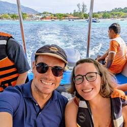 Für heute stand ein gebuchter Tagesausflug an: eine Schnorchel-Tour 🤿🚤 rund um Koh Lipe. Um 9 Uhr war Treffpunkt beim Veranstalter. Wir waren glücklicherweise nur sechs Personen in der Gruppe. Hatten also mehr als genug Platz auf dem Longtail Boat. 👍