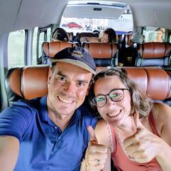 Gestärkt 💪 durch einen „typgerechten Snack“ (Schokobrötchen für Svenja, Ei-Butter-Toast für Felix) ging es um 13 Uhr aus Ipoh mit dem Bus 🚐 los. Das war unsere erste Busfahrt in Malaysia und sie war echt gut. Der Bus war sehr komfortabel mit viel Beinfreiheit. So kann man reisen. 🚐👍