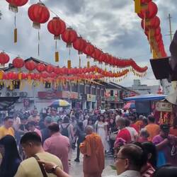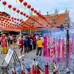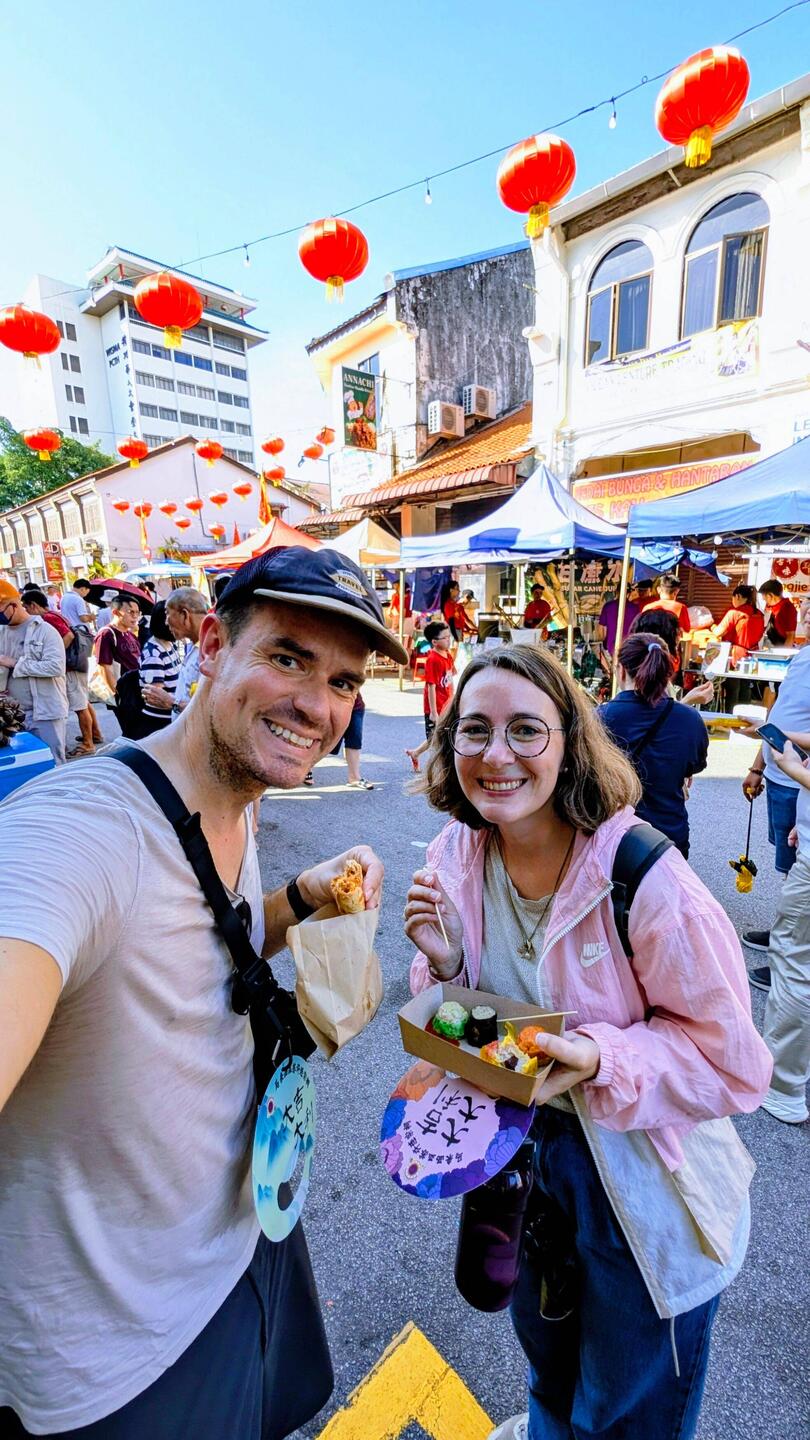 Unsere Unterkunft 🏠 befindet sich am Rand der „Altstadt“. Nur wenige Minute und wir waren Mitten im Gewusel. Besonderes Highlight aktuell 🥁: Seit gestern, vorallem heute und morgen, wir das Chinesische Neujahrsfest (Chinese New Year) gefeiert. 🇨🇳🎉 Der Start vom „Jahr des Feuer-Pferds“ 🔥🐴. Da in Malaysia und besonders hier in George Town sehr viele Chinesen 🇨🇳 leben ist hier alles entsprechend bunt geschmückt 🏮🏵️🏮 und es gibt viele Veranstaltungen. Neben den traditionellen Drachentänzen 🐲🐉 werden an den Tempeln viele Räucherstäbchen gezündet 💨. Sehr beeindruckend. 😮