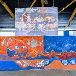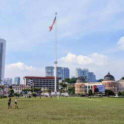 Von unserem Treffpunkt aus ging es zuerst zum 📍Merdeka Square, auch „Place of Independence“ (Platz der Freiheit) genannt, auf dem eine sehr große Malaysia Fahne 🇲🇾 weht. Von dort haben wir die 📍St Mary's Cathedral, den Merdeka 118 und den KL Tower (beide aus der Ferne) bestaunt. Danach spazierten wir vorbei am 📍Sultan Abdul Samad Building zum 📍River of Life (Fluss des Lebens) - die grüne Lunge von KL - , mit einem tollen Bild 🖼️ verschiedener Kulturen an der Wand, in Richtung dem 📍Pasar Seni (Central Market) mit vielen kleinen Geschäften, hauptsächlich für Souvenirs.