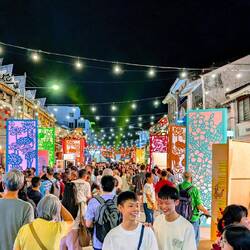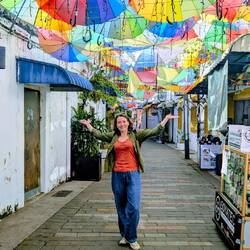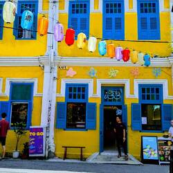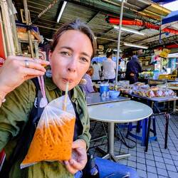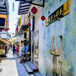 Wir laufen durch die Straßen und bestaunen unter anderem die 📍St. George's Anglican Church, den 📍Queen Victoria Memorial Clock Tower, 📍Clan Jetties Of Penang (auf Pfählen gebaute Häuser) und die 📍Armenian Street (Einkaufsstraße mit bunten Schirmen). Ein erster Bubble Tea 🧋 aus dem Mixue darf natürlich nicht fehlen.
