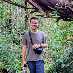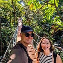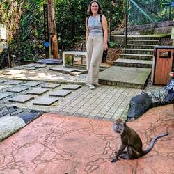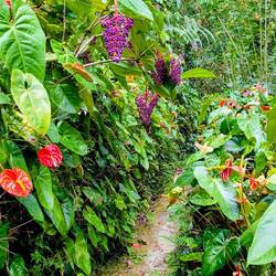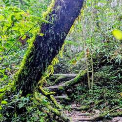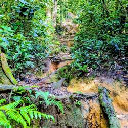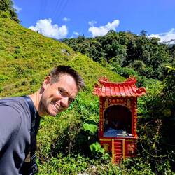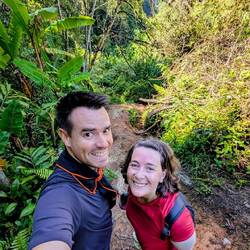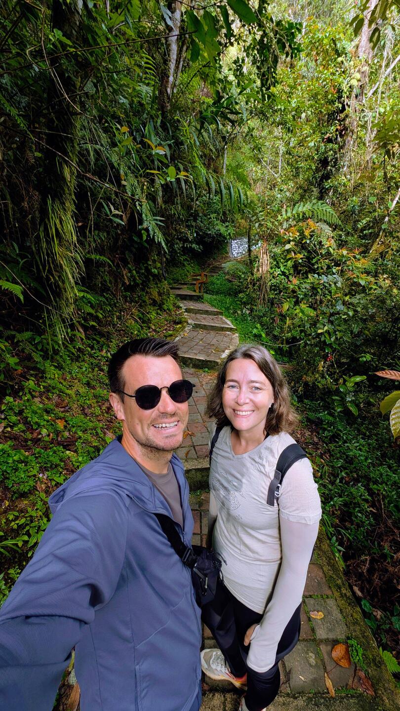 Der Weg hat auch ganz gemächlich angefangen. 😀👍 Zwar steil aber gut laufbar und entspannt. Wir haben die Ruhe sehr genossen 🤫, Bilder 📸 und Videos 📹 gemacht. Irgendwann wurde der Weg dann enger. 😮 Alles war feucht wegen dem Regen von gestern. Wir entsprechend zu dem Nass vom Schwitzen auch noch das. 😏 Egal. Wird schon bald wieder besser werden der Weg. Dachten wir uns. Wurde er leider nicht. 😟 Umdrehen war keine Option. Also gegenseitig motivieren 👏 und weiter. Außer einer Affenbande 🐒 war hier NIEMAND unterwegs. Immer wieder hoch und runter. Schlamm, Wasser, unbefestigter Weg. 😩 Am Ende wurde es ganz schön anstrengend. 🥵 Irgendwann hatten wir es endlich geschafft. 😮💨 Wir waren nach 2,5 Stunden endlich aus dem Dschungel draußen. 😮💨😮💨 Zwar mit einigen Kratzern, blauen Flecken, einem matschigen Schuh und dreckigen Hosen. Egal. Hauptsache geschafft. 💪
