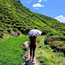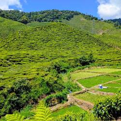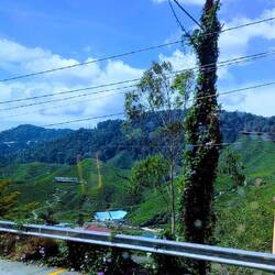 Das erste Stück sind wir noch auf der Autobahnen 🛣️ unterwegs gewesen. Dann ging es ab in die Berge 🏘️ auf einer sehr kurvenreichen Straße. Langsam hat sich die Gegend verändert und war immer mehr von landwirtschaftlich genutzten Flächen geprägt. 👨🏽🌾 Die Cameron Highlands liegen auf ca. 1️⃣5️⃣0️⃣0️⃣ m. Aufgrund der relativ kühlen Witterung (es ist deutlich kühler als bisher 🥶) gedeihen hier andere Pflanzen als in der malaysischen Ebene. Neben Erdbeeren 🍓, (grünem) Spargel, weiteren Blattgemüsen und Rosen 🌹 wird vor allem Tee 🌿 angebaut.